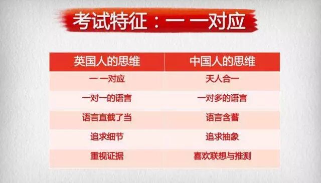 也就是说,出题重视的是证据,追求的是细节,他们说一即一,不要去做过多的推测,也就是说每道题是一定能够在原文中找到答案的。不像中国人喜欢天人合一,隐晦或者含沙射影,所以在这一点上大家一定要注意思维模式的调整。