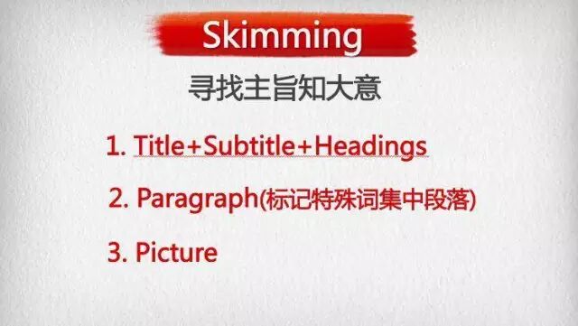 方法1:阅读寻找主旨大意(针对文章)