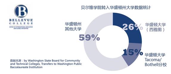 贝尔维学院 华盛顿大学(西雅图):26% 华盛顿大学Tacoma/Bothell分校:15% 华盛顿州其他大学:59%
