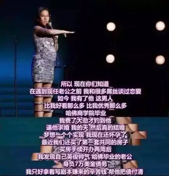 我们这么努力,不只为了配得上自己向往的爱情,更为了可以只嫁给爱情。 Netflix上有一段特别火的单人脱口秀,主持人叫做 Ali Wong 黄阿丽。除了段子实在有够污,说话实在以外,Ali 那位哈佛版男神吴彦祖一样的帅气老公也帮她赚足了女生们的羡慕(嫉妒)。