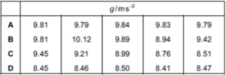 该题目对重力加速度g进行了若干次测量。其中D组的5次测量数据离散性很小,但距离真实值9.81g/ms-2偏差很大,属于图表中表C的测量情况。故该组数据为precise,but not accurate.