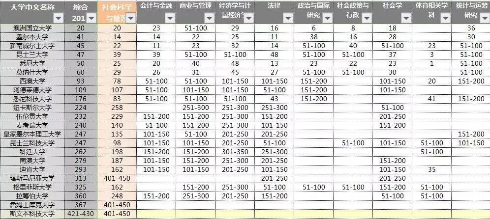 3.商科 澳洲的商科, 完全就是全面开花的类目。 因为申请商科的人,是最多的最多的最多的最多的最多的最多的……完全是澳洲的大势类科目。 其中以澳国立、新南和墨尔本大学的商科为最佳。 具体专业可以表现为会计、金融、管理、法律……。 4 教育 澳洲的教育, 最好不要将它和国内的教育类比。 那是完全不一样的世界: 澳洲留学产业的火爆就是一个证明; 澳洲教育专业的排名又是一个证明。 首先,薪水和福利双高; 其次,工作时间短; 最后,社会地位很高。 以上就是先为大家总结的一些澳洲的优势专业,除此之外还有很多,比如医学的护理,兽医,还有心理学等等。 按你胃, 澳洲作为一个热门的留学大国, 好的专业都太多了, 只要是你能想到的专业, 都能在澳洲的大学里找到一个不错的排名。