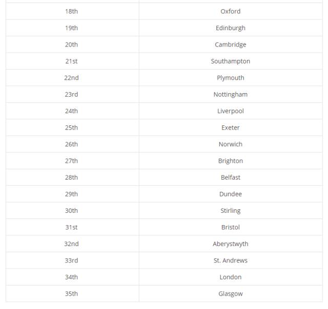 其实,小编觉得这份排名还是不错的。和其他大城市相比,最起码卡迪夫的房租真的是很便宜呀!!!欢迎大家来卡迪夫哟~