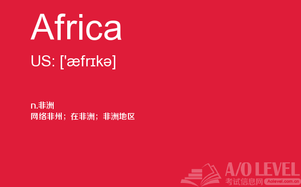 目前,a/olevel逐渐为人所熟知,很多学生都会主动了解alevel考试流程。同时也会抱怨a-level英语题比较难,任务重。那现在我们就放松一下,跟着a/o-level考试网小编来看看a-level考试中要积累的单词Africa,认真的学习积累。如果您想了解alevel学习,alevel课程是什么,alevel历年成绩分析,a水准考试美国等关于a-level考试的相关资讯,请继续浏览并关注课窝a/o-level考试网。