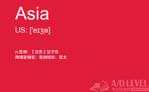 就读于国内学校的学生, 在申请英国学校时需要提交英国a-level考试成绩。很多考生因此英国a-level考试搞得头疼,放松一下,跟着a/o-level考试网来看看英国留学资讯吧!今天课窝a/o-level考试网小编给大家带来a-level考试重点词汇Asia的全解,对你肯定有帮助。如果您想了解alevel化学课程教案,alevel成绩,中国alevel人数,高中alevel考试等关于a-level考试的相关资讯,请继续浏览并关注课窝a/o-level考试网。