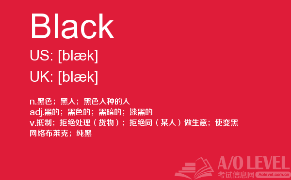 a- level课程一般在中国开设数学、进阶数学(或称高等数学)、物理、计算机学、会计学、商业学、经济学等课程供学生选择。那么关于alevel考生应该选哪些alevel课程呢?以后会给大家详细介绍,今天a/o-level考试网主要给大家全面介绍a-level词汇中的Black单词。如果您想了解考alevel有必要吗,国内alevel培训,alevel课程培训,alevel美本申请等关于a-level考试的相关资讯,请继续浏览并关注课窝a/o-level考试网。