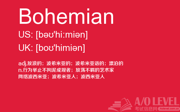 英国a-level考试是英国留学生去英国留学需要参加的考试,很多考生担心a-level考试分数要求高,英国a-level考试难度大,别担心,只要认真的学习a-level考试内容,小编相信大家一定能够考得a-level高分。今天a/o-level考试网给大家带来单词Bohemian的全面解析。如果您想了解alevel到底是什么课程,alevel考试要求,新加坡a水准好考吗,alevel网课等关于a-level考试的相关资讯,请继续浏览并关注课窝a/o-level考试网。