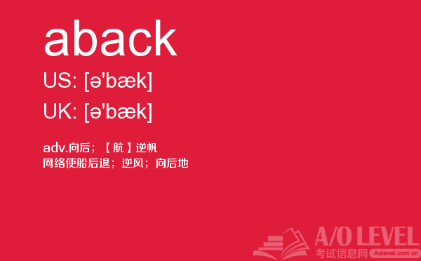 就读于国内学校的学生, 在申请英国学校时需要提交英国A-level考试成绩。很多考生因此英国A-level考试搞得头疼,放松一下,跟着A/O-level考试网来看看英国留学资讯吧!今天课窝A/O-level考试网小编给大家带来A-level考试重点词汇aback的全解,对你肯定有帮助。如果您想了解alevel进阶数学分数段,a水准简单吗,新加坡a水准考试难吗,alevel考点等关于A-level考试的相关资讯,请继续浏览并关注课窝A/O-level考试网。