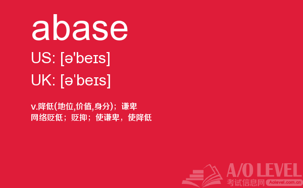 随著学生的素质提升,各大A-level课程培训班的师资和英国A-level题库也不断的完善,近年来学生考出来A-level分数也不断上涨。但是去英国留学,对英国留学资讯和英国的A-level考试资讯都是需要了解的,下面一起跟着A/O-level考试网来看看A-level词汇之abase的详细介绍。如果您想了解alevel培训机构,考alevel有必要吗,alevel经济真题,国内alevel学校等关于A-level考试的相关资讯,请继续浏览并关注课窝A/O-level考试网。