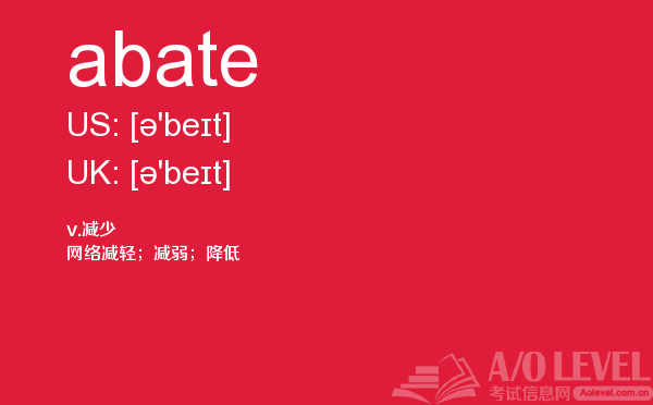 英国A-level考试报名费很好解决,那怎样才能达到A-level考试词汇量要求呢?别再纠结于A-level考试分数要求了,今天我们来一起看看A/O-level考试网今天带给你的A-level单词abate的讲解。如果您想了解alevel经济学知识点,新加坡o水准a1多少分,alevel课程比较,alevel数学公式表等关于A-level考试的相关资讯,请继续浏览并关注课窝A/O-level考试网。