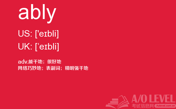 A-Level课程适用于年龄在15—18之间,初中毕业以上的在校中学生或具有同等学历的职高生,通常国内A-level学校招收的是高二毕业的学生,并要求参加相关的入学考试,由于A-level课程包括教学及试卷习题等都是英文形式出现,所以这要求学生有较高的英文水平。对于A-level考试适用对象有初步了解之后,下面alevel考试网给大家带来的alevel考试中你需要重点记住的单词ably的详细介绍。如果您想了解alevel数学评分,alevel物理考试难度,alevel培训中心,新加坡a水准考试试题等关于A-level考试的相关资讯,请继续浏览并关注课窝A/O-level考试网。