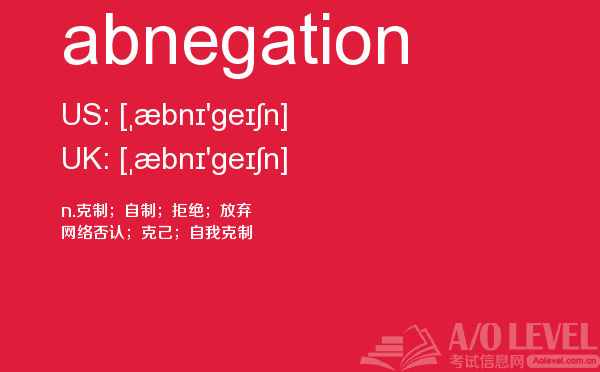 A- Level课程一般在中国开设数学、进阶数学(或称高等数学)、物理、计算机学、会计学、商业学、经济学等课程供学生选择。那么关于alevel考生应该选哪些alevel课程呢?以后会给大家详细介绍,今天A/O-level考试网主要给大家全面介绍A-level词汇中的abnegation单词。如果您想了解alevel生物难度,alevel课程可以申请留学新加坡吗,alevel物理实验,alevel真题答案等关于A-level考试的相关资讯,请继续浏览并关注课窝A/O-level考试网。