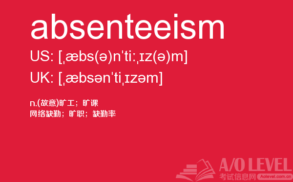 a- level课程一般在中国开设数学、进阶数学(或称高等数学)、物理、计算机学、会计学、商业学、经济学等课程供学生选择。那么关于alevel考生应该选哪些alevel课程呢?以后会给大家详细介绍,今天a/o-level考试网主要给大家全面介绍a-level词汇中的absenteeism单词。如果您想了解考alevel有必要吗,国内alevel培训,alevel课程培训,alevel美本申请等关于a-level考试的相关资讯,请继续浏览并关注课窝a/o-level考试网。