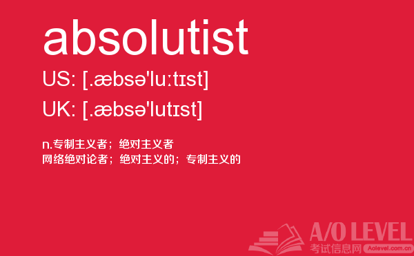 英国留学对于留学成绩的比拼越来越激烈,申请英国院校留学的一大指标a-level考试分数要求也水涨船高.虽然成绩只是申请的一部分,但不得不说,好看的英国a-level成绩是学生是否优秀的证据。放松一下跟着a/o-level考试网来学习一下a-level考试词汇absolutist的应用。如果您想了解上海alevel培训学校,澳大利亚alevel,alevel报名截止日期,爱德思alevel考试时间等关于a-level考试的相关资讯,请继续浏览并关注课窝a/o-level考试网。
