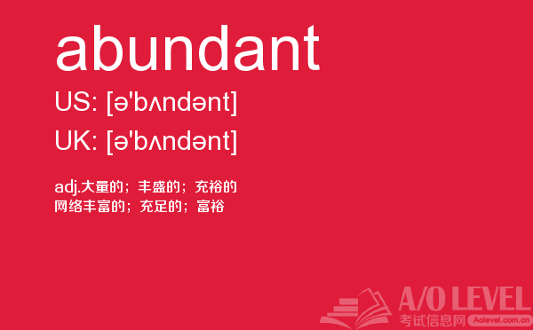 随着英国留学申请竞争的白热化,a-level成绩在学生个人简历中扮演的“入场券”角色,变得越来越重要。然而,在你参加a-level考试培训班前,你首先要对a-level考试有着一定的了解,一起跟着a/o-level考试网来看看小编今天带来a-level单词abundant的详细介绍。如果您想了解alevel课程可以申请留学新加坡吗,alevel中文书目,alevel词汇量,alevel参考书等关于a-level考试的相关资讯,请继续浏览并关注课窝a/o-level考试网。
