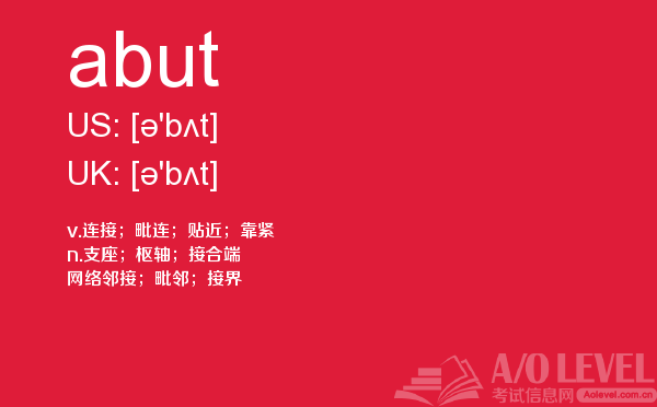 a-level(general certificate of education advanced level ),英国高中课程,是英国全民课程体系,是英国普通中等教育证书考试高级水平课程,也是英国学生的大学入学考试课程。今天alevel考试网小编给大家带来的alevel考试单词abut的详细介绍。希望大家能够认真的阅读。如果您想了解alevel英语试题,alevel去哪考试在中国,英国alevel高中,alevel写作真题等关于a-level考试的相关资讯,请继续浏览并关注课窝a/o-level考试网。