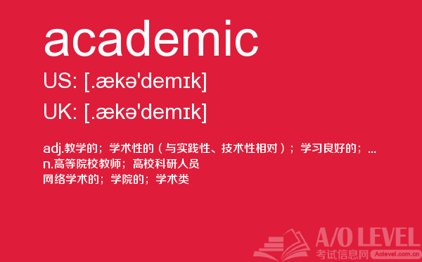 a-level 的考试将由所属的考试委员会分别于每年5-6月和10-11月在全球统一组织,成绩分别在8月和次年2月公布。关于a-level考试时间的具体内容,alevel考试网前面详细介绍过,大家可以查找alevel考试网前面的a-level考试资讯,alevel考试网每天会更新大量的alevel考试资讯,本篇要给大家介绍a-level单词academic的全面介绍。如果您想了解奥克兰大学alevel,a水准认可英联邦国家,alevel历年考试,alevel容易拿a的科目等关于a-level考试的相关资讯,请继续浏览并关注课窝a/o-level考试网。