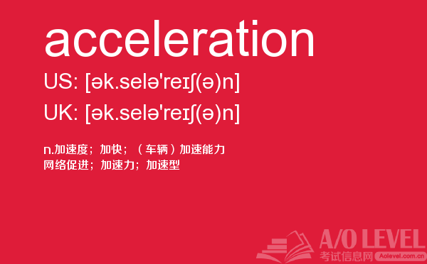 a-level(general certificate of education advanced level ),英国高中课程,是英国全民课程体系,是英国普通中等教育证书考试高级水平课程,也是英国学生的大学入学考试课程。今天alevel考试网小编给大家带来的alevel考试单词acceleration的详细介绍。希望大家能够认真的阅读。如果您想了解墨尔本大学alevel申请条件,新加坡a水准优势,悉尼大学alevel申请,alevel时间等关于a-level考试的相关资讯,请继续浏览并关注课窝a/o-level考试网。
