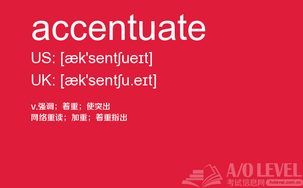 随著学生的素质提升,各大a-level课程培训班的师资和英国a-level题库也不断的完善,近年来学生考出来a-level分数也不断上涨。但是去英国留学,对英国留学资讯和英国的a-level考试资讯都是需要了解的,下面一起跟着a/o-level考试网来看看a-level词汇之accentuate的详细介绍。如果您想了解alevel备考,alevel写作分数,alevel考试日期,alevel学校什么时候招生等关于a-level考试的相关资讯,请继续浏览并关注课窝a/o-level考试网。