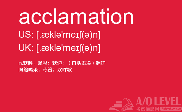 你知道考上a-level考试如何报名吗?最近很多人询问英国a-level考试有多难?到底要不要参加a-level考试培训?抛弃这些,a/o-level考试网老师告诉你,a-level单词最重要,今天带你学习acclamation怎么用,希望你认真的学习。如果您想了解中国alevel中心,alevel考试网,alevel学校考试难度,alevel申请等关于a-level考试的相关资讯,请继续浏览并关注课窝a/o-level考试网。