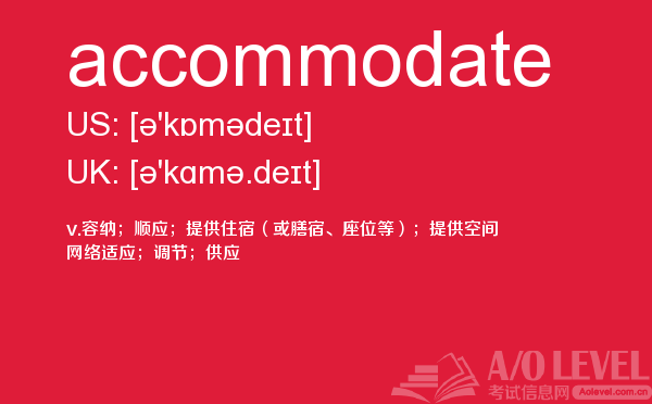 你知道考上a-level考试如何报名吗?最近很多人询问英国a-level考试有多难?到底要不要参加a-level考试培训?抛弃这些,a/o-level考试网老师告诉你,a-level单词最重要,今天带你学习accommodate怎么用,希望你认真的学习。如果您想了解英国alevel官网,alevel学校考试难度,alevel数学内容,新加坡a水准考试局等关于a-level考试的相关资讯,请继续浏览并关注课窝a/o-level考试网。