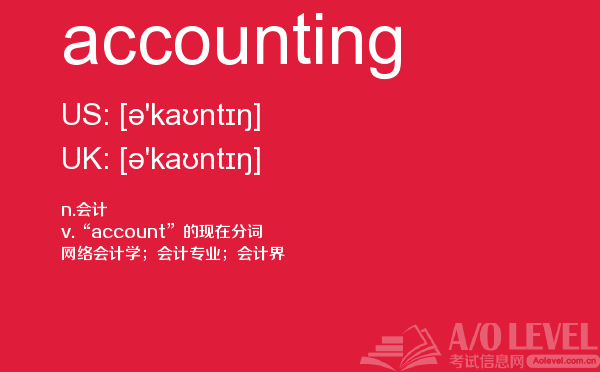 众多周知的英国a-level入学考试是进入英国院校的必经之路,所以我们自然不能小看,建议同学们能够加强a-level考试真题的练习,提前明确英国a-level考试报名的具体信息。为了提高考生们的英国a-level考试成绩,a/o-level考试网小编会每天给大家更新a-level留学资讯和alevel考试资讯,今天带来的是关于a-level考试词汇的单词全解,下面带你学习accounting的用法。如果您想了解剑桥alevel课程费用,alevel真题,新加坡a水准预科学院,alevel物理知识点等关于a-level考试的相关资讯,请继续浏览并关注课窝a/o-level考试网。