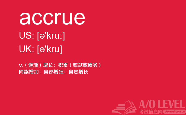 随著学生的素质提升,各大a-level课程培训班的师资和英国a-level题库也不断的完善,近年来学生考出来a-level分数也不断上涨。但是去英国留学,对英国留学资讯和英国的a-level考试资讯都是需要了解的,下面一起跟着a/o-level考试网来看看a-level词汇之accrue的详细介绍。如果您想了解alevel考试年龄,alevel历年成绩分析,怎么学新加坡a水准,alevel考试真题等关于a-level考试的相关资讯,请继续浏览并关注课窝a/o-level考试网。