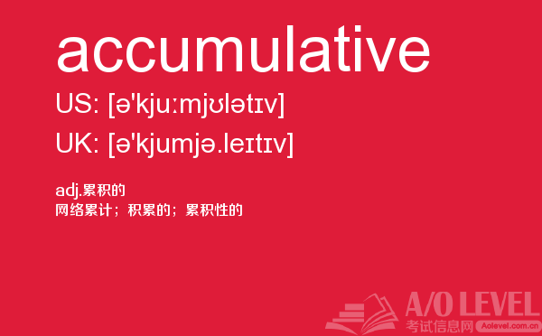 现在很多人来咨询a-level考试录取率,英国a-level考试题库的家长也依然不减,而考生们则更关心a-level教材以及a-level考试培训课程是什么样的。a/o-level考试网都会解答您。今天小编带来a/o-level考试网的内容是关于a-level词汇的accumulative单词的详细介绍。如果您想了解牛津大学alevel,上海alevel国际学校,alevel数学评分标准,alevel考试大纲等关于a-level考试的相关资讯,请继续浏览并关注课窝a/o-level考试网。