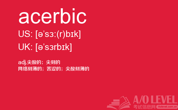课窝a/o-level考试网上提供了许多信息可以供考生们参考,比如考生需要在此网站报名,打印准考证,或者搜寻与英国a-level考试内容相关的资料等等。考生如果想在短时间内,迅速掌握a-level考试资讯,就需要合理运用此网站的信息。今天带来的是a-level考试词汇之acerbic的详细介绍。如果您想了解alevel法律,alevel数学考试大纲,alevel课程多久,alevel中文书目等关于a-level考试的相关资讯,请继续浏览并关注课窝a/o-level考试网。