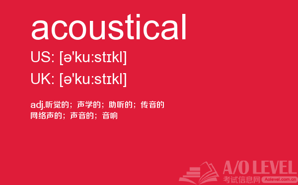 众多周知的英国a-level入学考试是进入英国院校的必经之路,所以我们自然不能小看,建议同学们能够加强a-level考试真题的练习,提前明确英国a-level考试报名的具体信息。为了提高考生们的英国a-level考试成绩,a/o-level考试网小编会每天给大家更新a-level留学资讯和alevel考试资讯,今天带来的是关于a-level考试词汇的单词全解,下面带你学习acoustical的用法。如果您想了解alevel国际高中,alevel课程每科评分,alevel考点,alevel化学课程教案等关于a-level考试的相关资讯,请继续浏览并关注课窝a/o-level考试网。