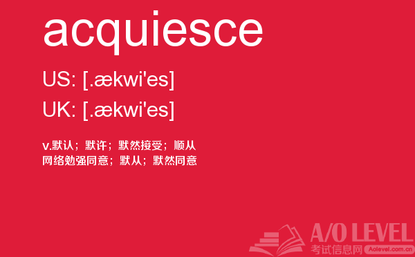 为了有a-level考试高分,很多童靴都参加英国高中课程a-level考试前都会做很多a-level考试真题。a-level考试备考要有一定的方法,课窝a/o-level考试网每天都会给大家带来a-level考试资讯,a-level考试备考相关的内容,今天课窝a/o-level考试网小编给大家带来关于a-level单词acquiesce的详细介绍。如果您想了解alevel是上机的考试形式吗,a水准一年,爱德思alevel真题,alevel考什么等关于a-level考试的相关资讯,请继续浏览并关注课窝a/o-level考试网。