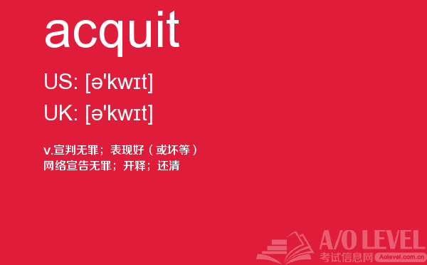 对于a-level考试,我们一再强调要加强a-level考试真题实战,多做英国a-level考试真题。放松一下,跟着a/o-level考试网来积累一下a-level考试中你会用到的单词acquit,对你的a-level考试会有很大的帮助。如果您想了解alevel考试用品,alevel写作真题,alevel词汇书,alevel非全日制培训等关于a-level考试的相关资讯,请继续浏览并关注课窝a/o-level考试网。