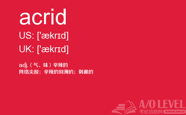 你知道考上a-level考试如何报名吗?最近很多人询问英国a-level考试有多难?到底要不要参加a-level考试培训?抛弃这些,a/o-level考试网老师告诉你,a-level单词最重要,今天带你学习acrid怎么用,希望你认真的学习。如果您想了解alevel英语试题,alevel考试哪两个阶段,新加坡olevelalevel,alevel澳洲等关于a-level考试的相关资讯,请继续浏览并关注课窝a/o-level考试网。