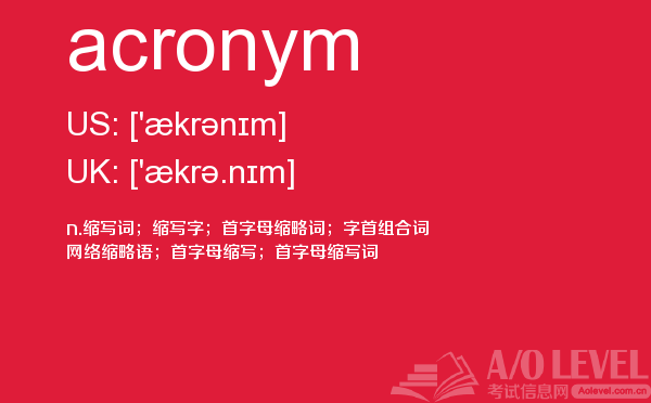 英国、加拿大、爱尔兰、澳大利亚、新西兰、新加坡等英语国家没有统一的大学入学标准,虽然它们都认可a-level证书,但是各所大学、各个专业对学生学过哪几门a-level课程以及成绩都有不同的要求。所以怎样选择课程并没有一个唯一的答案。对于如何选课的问题要根据具体情况而定。这些在你的a-level考试中都不是重要的,重要的是a-level成绩,a-level成绩取决于a-level词汇量,那么今天小编给大家带来a-level考试重点词汇acronym的全面解析。如果您想了解alevel考试卷,alevel课程每科评分,a水准考试时间,美国有alevel课程吗等关于a-level考试的相关资讯,请继续浏览并关注课窝a/o-level考试网。