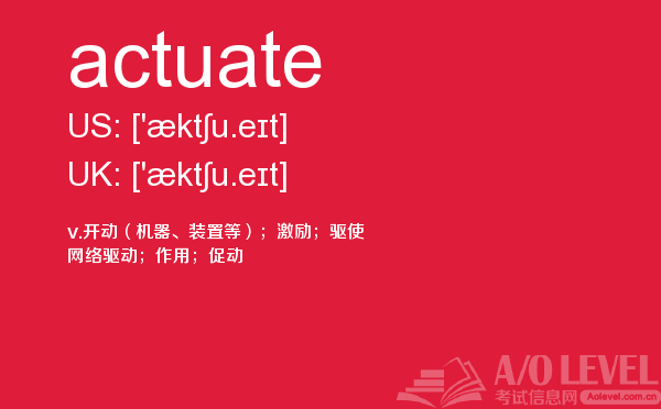 英国留学考试a-level考试考什么?a-level考试题型一定要注意积累和总结。课窝a/o-level考试网小编每天会给大家带来a-level考试的相关资讯,今天带来a-level单词actuate的解析,希望大家认真的积累a-level考试词汇。如果您想了解alevel词汇表,alevel生物难度,申请新加坡a水准,alevel作文等关于a-level考试的相关资讯,请继续浏览并关注课窝a/o-level考试网。