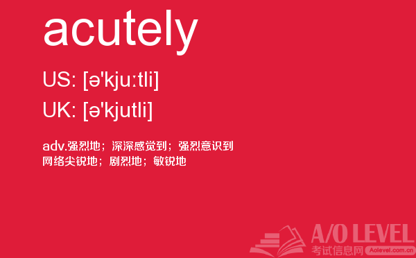 就读于国内学校的学生, 在申请英国学校时需要提交英国a-level考试成绩。很多考生因此英国a-level考试搞得头疼,放松一下,跟着a/o-level考试网来看看英国留学资讯吧!今天课窝a/o-level考试网小编给大家带来a-level考试重点词汇acutely的全解,对你肯定有帮助。如果您想了解alevel是什么,alevel课程培训,alevel考试地点,新加坡a水准考试等关于a-level考试的相关资讯,请继续浏览并关注课窝a/o-level考试网。