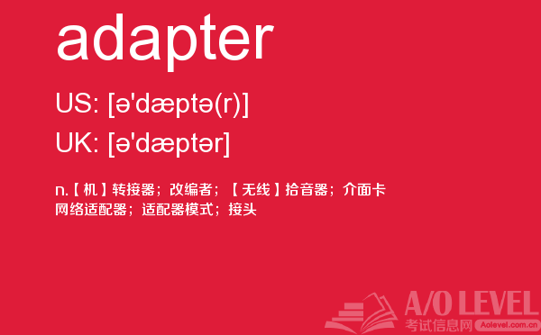 今天课窝a/o-level考试网小编给大家带来alevel考试至关重要的内容a-level单词adapter的详细介绍。希望大家能够认真的阅读,在备考a-level中会用到,关于a-level考试时间,alevel考试费用等相关问题,可以关注课窝a/o-level考试网。如果您想了解alevel双语教材,英国alevel课程是什么,alevel课程物理总结,alevel考试成绩查询等关于a-level考试的相关资讯,请继续浏览并关注课窝a/o-level考试网。