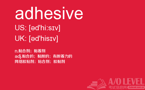 就读于国内学校的学生, 在申请英国学校时需要提交英国a-level考试成绩。很多考生因此英国a-level考试搞得头疼,放松一下,跟着a/o-level考试网来看看英国留学资讯吧!今天课窝a/o-level考试网小编给大家带来a-level考试重点词汇adhesive的全解,对你肯定有帮助。如果您想了解alevel培训学费,alevel考试题型,考alevel多少钱,中国有a水准培训班吗等关于a-level考试的相关资讯,请继续浏览并关注课窝a/o-level考试网。