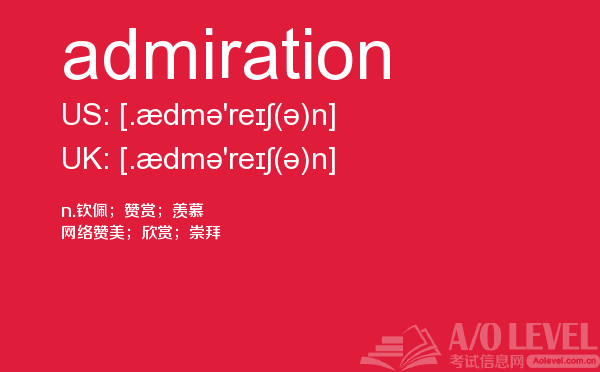 a-level(general certificate of education advanced level ),英国高中课程,是英国全民课程体系,是英国普通中等教育证书考试高级水平课程,也是英国学生的大学入学考试课程。今天alevel考试网小编给大家带来的alevel考试单词admiration的详细介绍。希望大家能够认真的阅读。如果您想了解alevel主要课程,alevel真题网,alevel考试评分,alevel申请新加坡等关于a-level考试的相关资讯,请继续浏览并关注课窝a/o-level考试网。