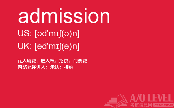 a-level课程包含70多门供学生选择,一般学生选择3至4门来学,中国学生在数学学科上有很大的优势,一般学生都会选择基础数学。学生选择课程时,一般要考虑现在自己的优势科目和将来的发展方向,即你想选择哪个大学、什么专业,从而根据他们的要求有的放矢地选课。关于alevel选课后续会详细介绍,下面带来a-level考试词汇admission的详细介绍。如果您想了解交大alevel学费,新加坡a水准考试在哪考,中国alevel1月份考试,olevel和alevel的区别等关于a-level考试的相关资讯,请继续浏览并关注课窝a/o-level考试网。