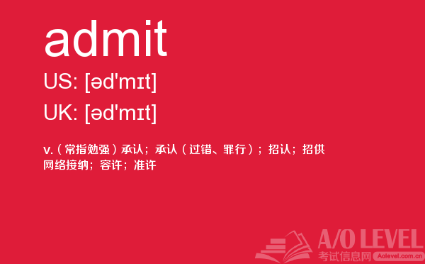 现在申请英国院校的中国孩子非常多,几乎每一个学生都在为一种叫做英国a-level的考试而努力着。a/o-level考试网老师为大家解析a-level考试重难点单词admit,大家认真学习,会有帮助。如果您想了解新加坡国立大学a水准,中国alevel考试,alevel怎么考试,国际高中的课程alevel等关于a-level考试的相关资讯,请继续浏览并关注课窝a/o-level考试网。