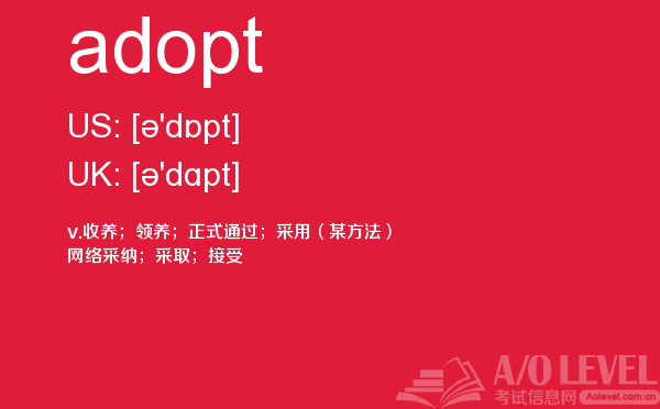 a-level课程包含70多门供学生选择,一般学生选择3至4门来学,中国学生在数学学科上有很大的优势,一般学生都会选择基础数学。学生选择课程时,一般要考虑现在自己的优势科目和将来的发展方向,即你想选择哪个大学、什么专业,从而根据他们的要求有的放矢地选课。关于alevel选课后续会详细介绍,下面带来a-level考试词汇adopt的详细介绍。如果您想了解alevel国际学校,alevel数学有几本书,英国alevel成绩只有c,alevel考试成绩等关于a-level考试的相关资讯,请继续浏览并关注课窝a/o-level考试网。