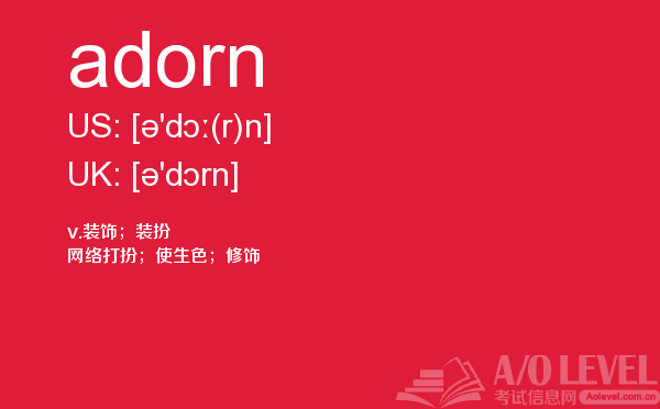 在a-level备考的过程中,想要冲刺到a-level写作的高分,相信大家都应该会知道,除了需要掌握a-level写作的一些技巧之外,优化文章中的词汇和句型也是冲刺高分的关键所在。也就是说,只有充分掌握了语法知识,才能让我们的的文章更为丰富形象。除了a-level写作,在a-level其他方面同学们也需要了解,下面课窝a/o-level考试网小编给大家带来a-level单词adorn的介绍。如果您想了解alevel经济学大纲,英国高中alevel排名,alevel试卷,用alevel成绩申请大学等关于a-level考试的相关资讯,请继续浏览并关注课窝a/o-level考试网。