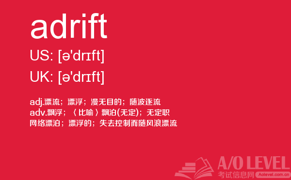 英国a-level考试报名费很好解决,那怎样才能达到a-level考试词汇量要求呢?别再纠结于a-level考试分数要求了,今天我们来一起看看a/o-level考试网今天带给你的a-level单词adrift的讲解。如果您想了解alevel物理测试题,南京alevel培训机构,alevel商科教材,上海alevel学校排名等关于a-level考试的相关资讯,请继续浏览并关注课窝a/o-level考试网。