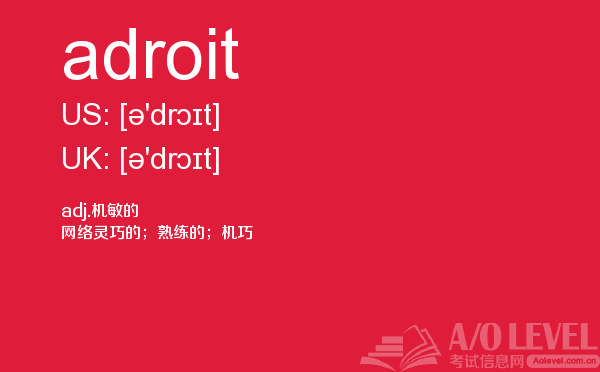 随着英国留学申请竞争的白热化,a-level成绩在学生个人简历中扮演的“入场券”角色,变得越来越重要。然而,在你参加a-level考试培训班前,你首先要对a-level考试有着一定的了解,一起跟着a/o-level考试网来看看小编今天带来a-level单词adroit的详细介绍。如果您想了解alevel课程可以申请留学新加坡吗,alevel中文书目,alevel词汇量,alevel参考书等关于a-level考试的相关资讯,请继续浏览并关注课窝a/o-level考试网。