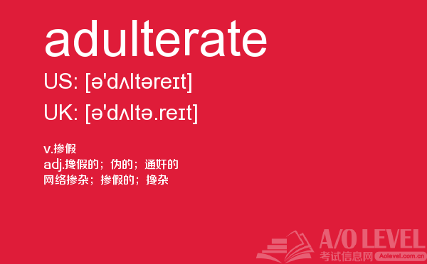 今天课窝a/o-level考试网小编给大家带来alevel考试至关重要的内容a-level单词adulterate的详细介绍。希望大家能够认真的阅读,在备考a-level中会用到,关于a-level考试时间,alevel考试费用等相关问题,可以关注课窝a/o-level考试网。如果您想了解新加坡a水准官网,alevel考试指南,新加坡剑桥a水准考试,alevel数学名词等关于a-level考试的相关资讯,请继续浏览并关注课窝a/o-level考试网。
