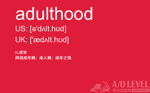 现在很多人来咨询a-level考试录取率,英国a-level考试题库的家长也依然不减,而考生们则更关心a-level教材以及a-level考试培训课程是什么样的。a/o-level考试网都会解答您。今天小编带来a/o-level考试网的内容是关于a-level词汇的adulthood单词的详细介绍。如果您想了解新加坡留学a水准,alevel成绩有效期,alevel经济学章节总结,中国alevel等关于a-level考试的相关资讯,请继续浏览并关注课窝a/o-level考试网。
