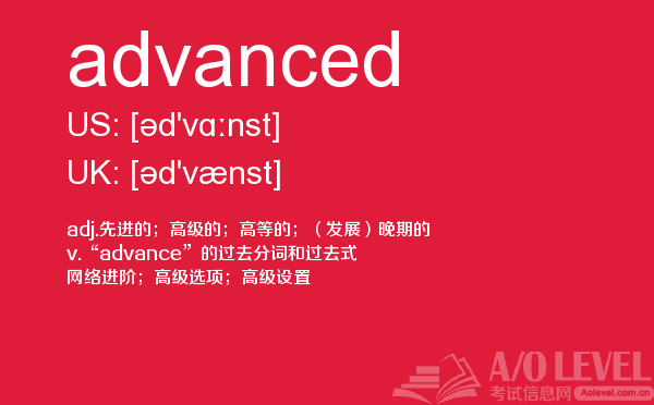 a- level课程一般在中国开设数学、进阶数学(或称高等数学)、物理、计算机学、会计学、商业学、经济学等课程供学生选择。那么关于alevel考生应该选哪些alevel课程呢?以后会给大家详细介绍,今天a/o-level考试网主要给大家全面介绍a-level词汇中的advanced单词。如果您想了解alevel英语词汇,alevel官网报名,剑桥alevel课程费用,alevel英语试题等关于a-level考试的相关资讯,请继续浏览并关注课窝a/o-level考试网。