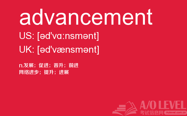 课窝a/o-level考试网上提供了许多信息可以供考生们参考,比如考生需要在此网站报名,打印准考证,或者搜寻与英国a-level考试内容相关的资料等等。考生如果想在短时间内,迅速掌握a-level考试资讯,就需要合理运用此网站的信息。今天带来的是a-level考试词汇之advancement的详细介绍。如果您想了解alevel数学教材,新加坡a水准预备班,alevel简介,英国中学alevel排名等关于a-level考试的相关资讯,请继续浏览并关注课窝a/o-level考试网。