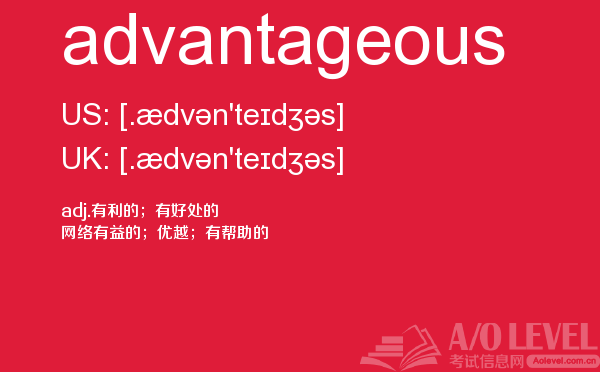 英国高中课程(a-level)的学制为两年:第一年称为as水准,学生通常选择自己最擅长且最有兴趣的3—4门课,通过考试后获得as证书。第二年称为a2水准,学生可选择as水准中优秀的3门课继续学习,通过考试后获得a-level证书。关于a-level学制相信大家肯定有一定的了解,今天alevel考试网想要带大家了解的并不是a-level学制的问题,想要介绍的是a-level重难点单词advantageous,希望对大家有帮助。如果您想了解在线alevel辅导,alevel时间,alevel写作,alevel化学知识点等关于a-level考试的相关资讯,请继续浏览并关注课窝a/o-level考试网。